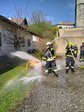Frühjahrsübung mit der Annahme Dachstuhl der Kirche brennt.