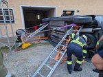 Bei der Übung im Juni wurde das Stabilisieren eines auf der Seite liegenden Autos beübt. Dabei wurden verschiedene Varianten unter zur Hilfenahme von Steckleiterteilen und Greifzug getestet. An der Übung nahmen 15 Kameraden teil.